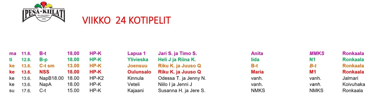 Ohjelmassa ovat alkuperäiset tuomarit, eli muistakaa miten olette vaihdelleet pelejä alueleirien takia.