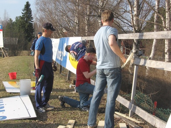 Vappuna alkuillasta Ronkaalaan kokoontui innokas porukka herättämään pesisstadionimme talviunestaan. Porukalla siivottiin toimistotiloja, kioskeja ja muita tiloja. Miehet ja vanhimmat poikajuniorit kantoivat mainostauluja kentälle ja laittoivat ne paikoilleen. Myös kunnostustoimenpiteitä tehtiin sekä mainosaidoille että katsomorakenteille. Parasta kuitenkin taisi olla uurastuksen jälkeen pidetty eväshetki makkaran ja kahvin kera. Tarjoilusta kiitos K-Supermarket Haapajärvelle! |