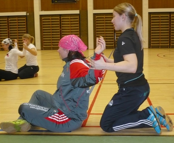 Naiset kaipasivat kunnon venytyksiä käsille. Heittelyyn on ilmeisesti käytetty aikaa.