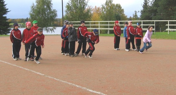 Päättäjäisten aluksi Ronkaalassa oli käytiin läpi tekniikkarataa, jossa oli erilaisia toimintapisteitä junioripelaajille. C-tytöt vetäjänsä Sauli Sornikosken kanssa olivat ohjaamassa eri pisteissä.