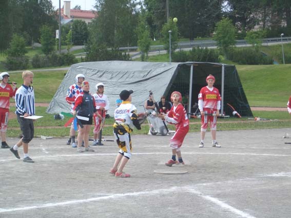 Pesä-Kiilojen pojat pelaamassa Siilinjärveä vastaan Varkauden Suurleirillä. Peli pelattiin torstaina ja tässä pelissä Pesä-Kiilat vei voiton juoksuin 2-10. Leiri jatkuu vielä jatko-ohjelmilla, ja perjantaina pelataan sarjojen Itä-Länsi -ottelut ja lauantaina sijoitusottelut. Kuvat leiriltä toimitti Jorma Piiponniemi. |