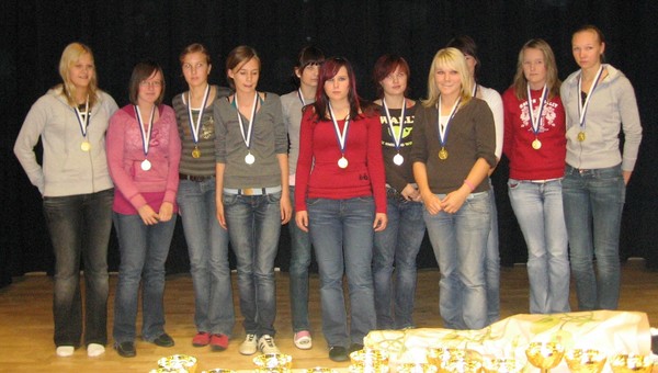 D-tyttöjen ykkösjoukkue sai piirinmestaruusmitalit kaulaansa.