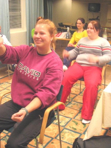 Haapajärven naisten viikonloppu oli jälleen pesäpallotäyteinen 4.-5.2.2005. Perjantai-iltana aloitettiin perinteisillä testeillä. Monista eri suorituksista perjantai-illalle sijoittuivat 30 metrin juoksu, loikat sekä kuntopallo. Kannustus oli kovaa, niin kuin aina yleensä,. kun jokainen pyrki parantamaan tuloksiaan edellisistä testeistä. Pallot lentelivät ja jaloilla kuroteltiin mahdollisimman kauas. Taisipa tällä kertaa joukosta löytyä muutama todellinen yllättäjäkin! Lauantaiaamuna testit jatkuivat puntilla sekä nopeus-kestävyys -juoksulla. Puntilla uskallettiin kokeilla vieläkin raskaampaa huoltaja Mirka Salmelan avustuksella ja juoksusuoralla nähtiin jo hiukkasen punehtuneita poskia, kun menossa oli jo kuudes 30 metrin pätkä kaikista yhdeksästä. Jokainen kuitenkin selvisi kunnialla loppuun asti ja treenin jälkeen väsynyt porukka kokoontui vielä yhteiseen palaveriin, jossa käytiin läpi ensi kesän kokoonpanoa sekä lihashuoltoa ja muita huoltoon liittyviä tärkeitä seikkoja. Illalla keräännyttiin vielä yhteiseen hauskanpitoon Osuuspankille. Luvassa oli saunomista sekä yhteisiä leikkejä, jotka osoittautuivatkin niin hauskoiksi, että yhden jos toisenkin silmäkulmassa pilkahtivat naurunkyyneleet. Tämä ilta oli tarkoitettu nostattamaan juuri koko joukkueen yhteishenkeä ja suunnitelmissa näytettiin onnistuneen! |
