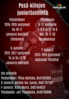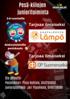 Kesä ja lomat lähestyy ja on aika pesiskoulujen ja pesisliikkareiden. Pesisliikkari on alkanut jo sunnuntaisin Jalmarin kentällä klo 16-17. Mukaan mahtuu vielä. Pesisliikkarit ja pesiskoulut ovat ilmaisia, sillä Suomenselän OP kustantaa pesiskoulun ja Haapajärven Lämpö pesisliikkarin lapsillenne. Ohjeet huoltajilleTervetuloa Haapajärven Pesä-Kiilojen järjestämään pesiskouluun tai pesisliikkariin! Tänä vuonna pesiskoulun teille kustantaa ilmaiseksi Suomenselän OP , joka on tarkoitettu alakouluikäisille ja pesisliikkarin Haapajärven Lämpö Oy, joka on tarkoitettu 3-6-vuotiaille. Eli toiminta vakuutuksineen ja harjoituksineen on lapsellenne ilmaista. Toiminta ei ole kilpaurheilua. Ainoa mitä teidän tulee tehdä on kirjautua Suomisporttiin oikeaan ryhmään alla olevien linkkien kautta.