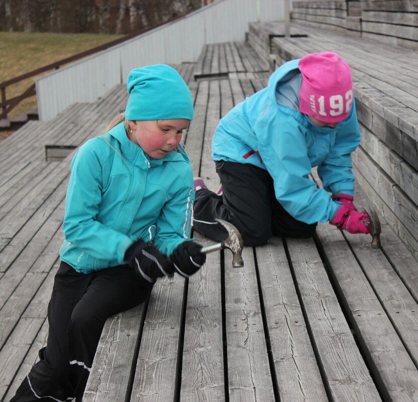 Pienimmät talkoolaiset naputtelivat nauloja.