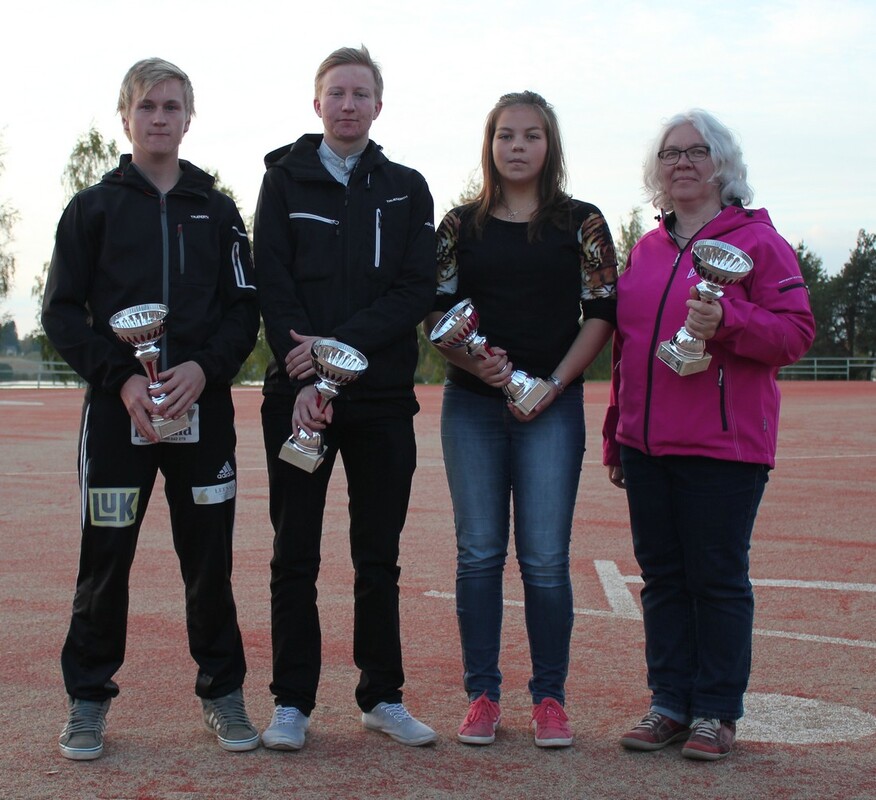 Vuoden vetäjät Arttu Huhtala ja Eetu Flink, vuoden tuomari Roosa Honkala ja vuoden talkoolainen Maria Laurila